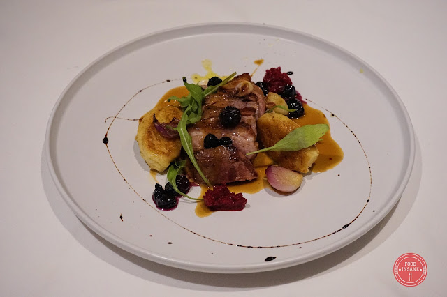 烟熏鸭胸肉配上蔓越莓酱,再以马铃薯丸子,完美搭配。